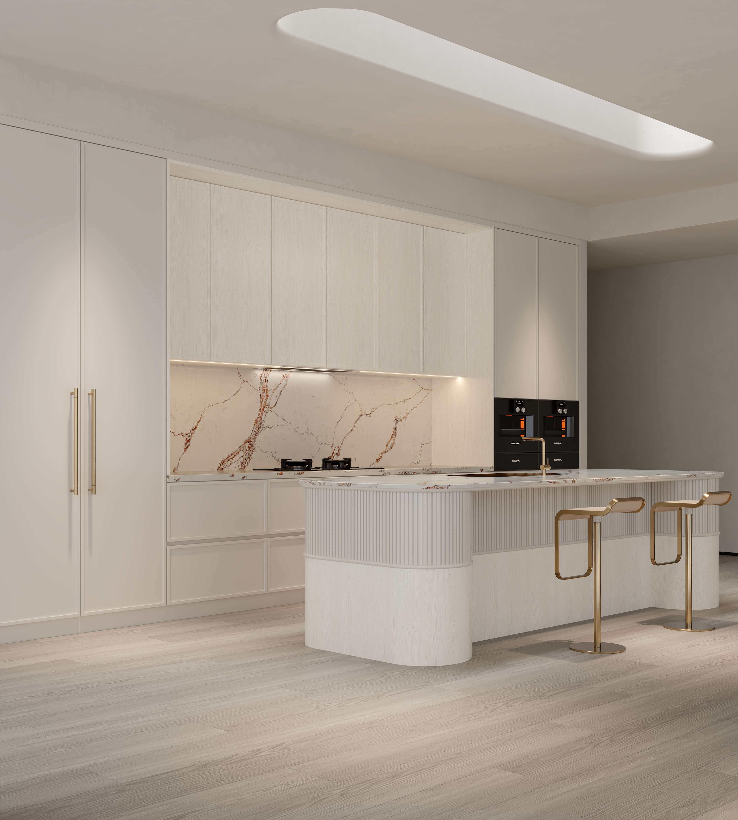 The NOORI Series combines premium timber veneers and durable polyurethane finishes for a kitchen of unmatched sophistication. Its unique craftsmanship and thoughtful design create a luxurious, personalized space that stands out in both style and function.
