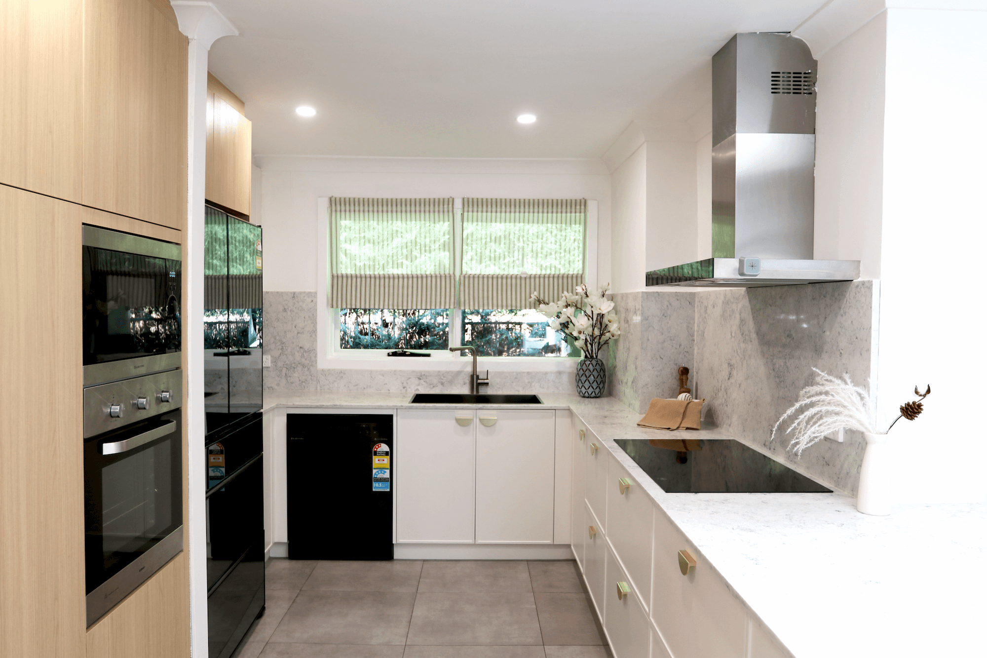 This Castle Hill kitchen project features a contemporary design with stone benchtops, custom cabinetry, modern appliances, and a functional island bench. Combining style with practicality, the space offers ample storage, high-quality finishes, and a bright, open layout that creates the perfect hub for family living and entertaining.